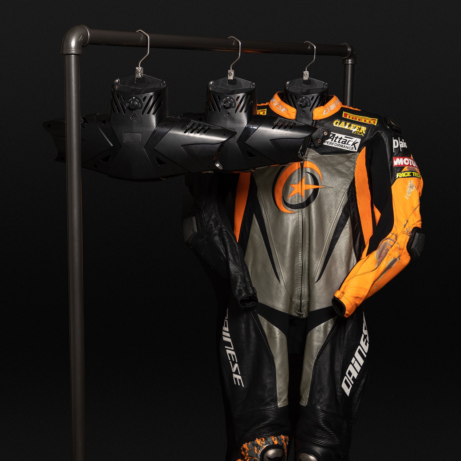 From soggy wetsuits to sweaty moto leathers, the GearDryer Airhanger 12V is the solution. The Airhanger sends a powerful supply of ambient forced air directly through the suit to quickly remove moisture. That means more comfort, less odor, and a longer lifespan for your gear. Plus, the 12V power source allows you to use it just about anywhere—at home or on the road.